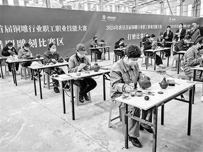 3月29日,由河北省保定市唐县总工会主办、唐县长古城镇政府承办的唐县第一届铜雕产业职工职业技能大赛在长古城镇河北恒昌泰铜雕有限公司举行,来自全县铜雕行业的11家单位、31名选手进行了同台竞技。比赛包括蜡型雕刻、铜工艺品焊接、铜工艺品打磨三个项目,通过数量、质量两方面综合评定选手成绩。通过激烈角逐,最后评选出一等奖3人、二等奖6人、三等奖9人。
